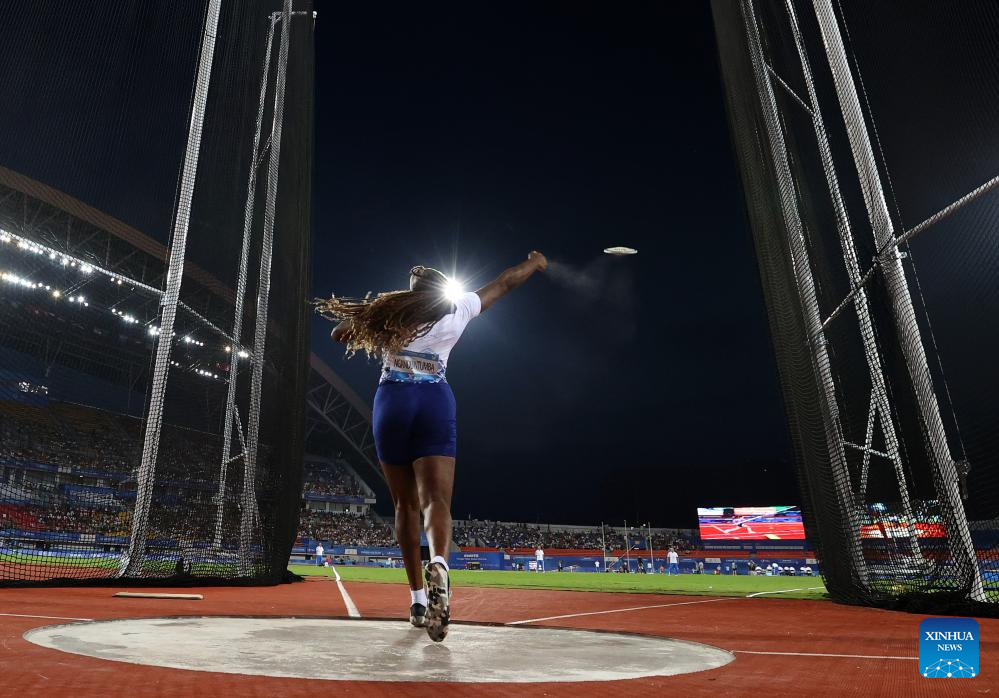 Amanda Ngandu Ntumba of France competes during the athletics women's discus throw final at the 31st FISU Summer World University Games in Chengdu, southwest China's Sichuan Province, Aug. 5, 2023. (Xinhua/Jia Haocheng)