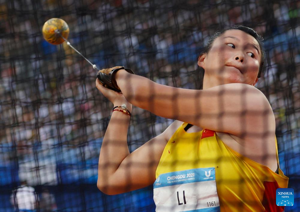 China's Li Jiangyan competes during the athletics women's hammer throw final at the 31st FISU Summer World University Games in Chengdu, southwest China's Sichuan Province, Aug. 5, 2023. (Xinhua/Jia Haocheng)