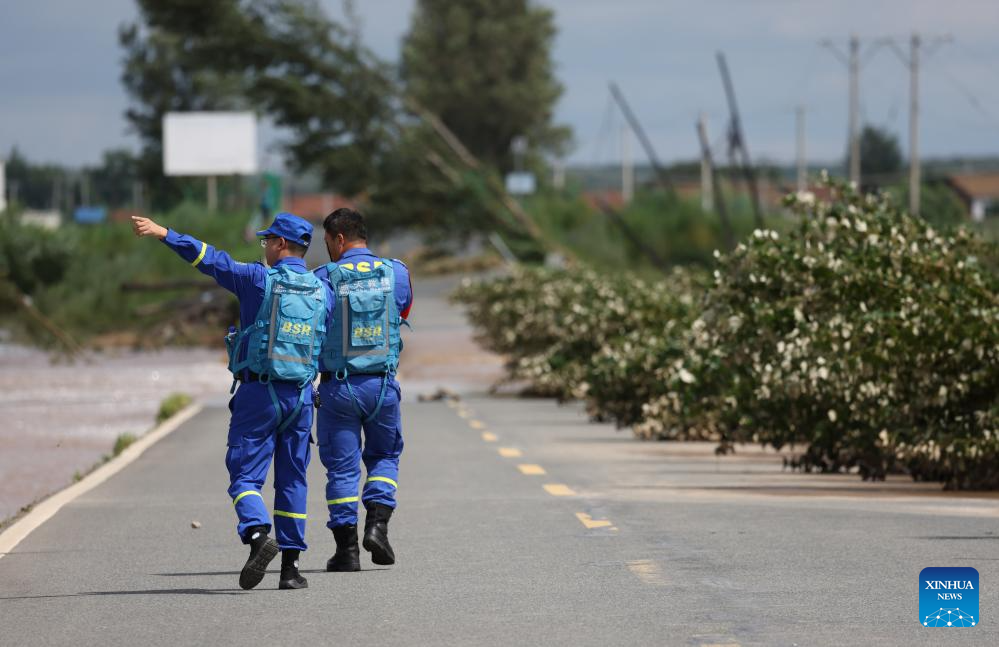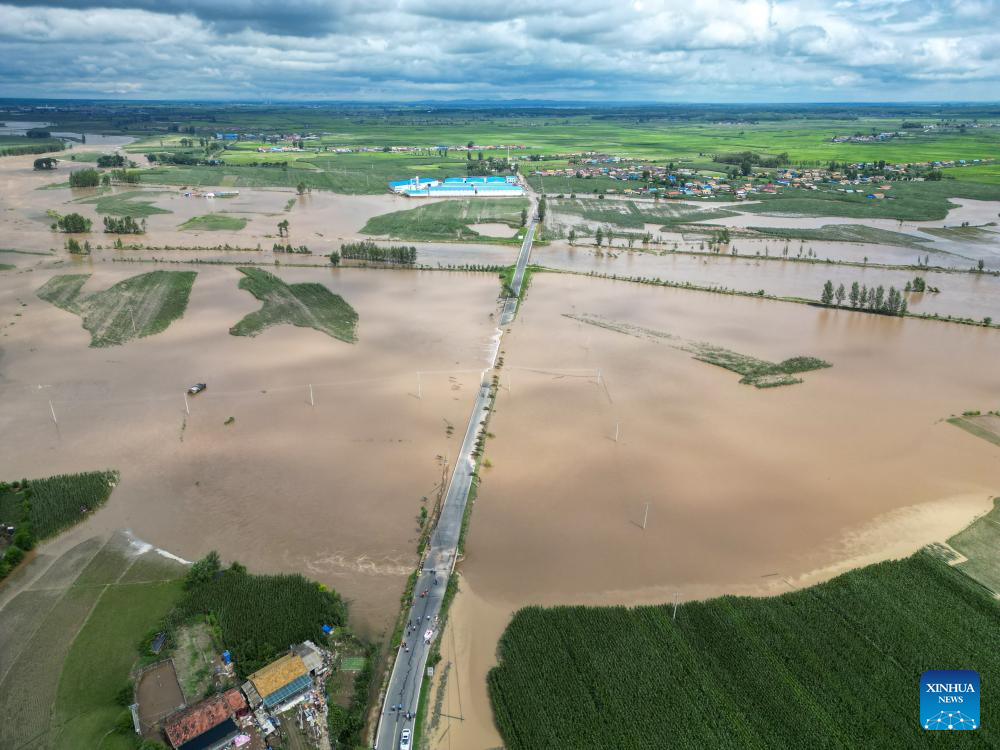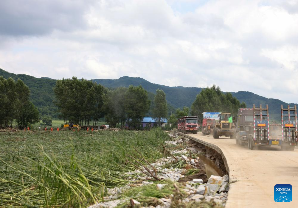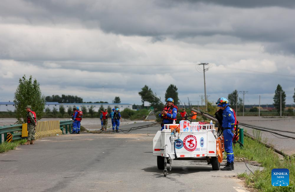 Continuous heavy rainfall caused flooding, bridge collapses and road damages in several towns of Shulan. Jilin Province have dispatched many rescue reinforcements to Shulan to offer disaster relief support. (Xinhua/Yan Linyun)
