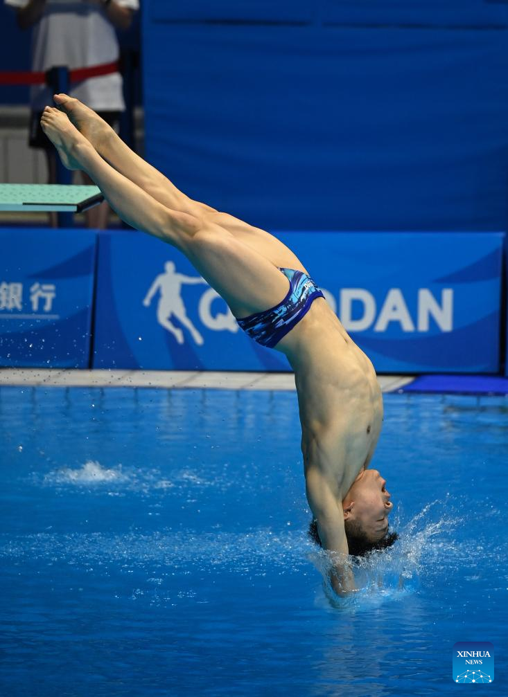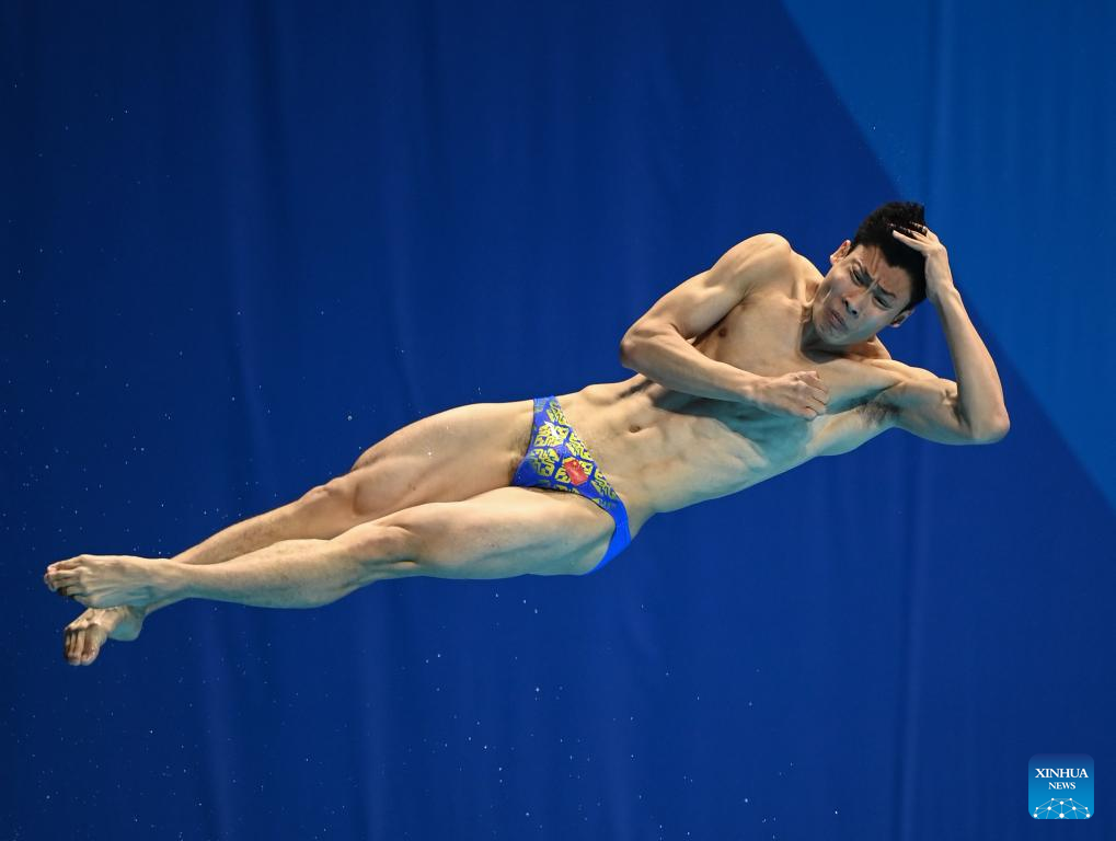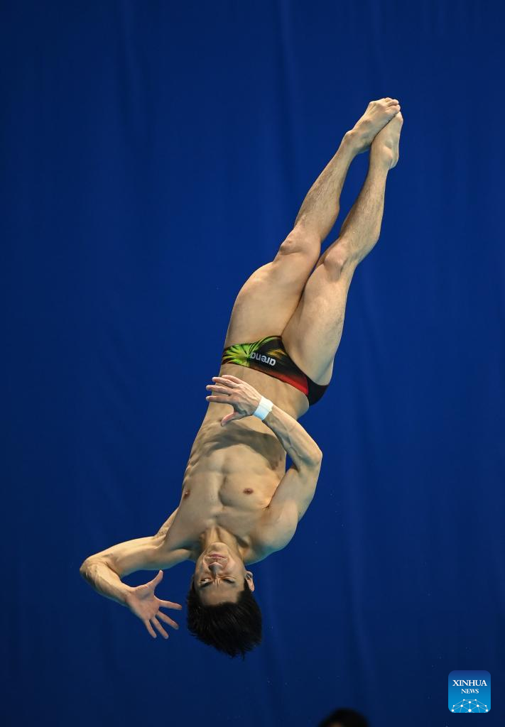 Tai Xiaohu of China competes during the men's 1m springboard final of diving at the 31st FISU Summer World University Games in Chengdu, southwest China's Sichuan Province, Aug. 5, 2023. (Xinhua/Wang Xiang)
