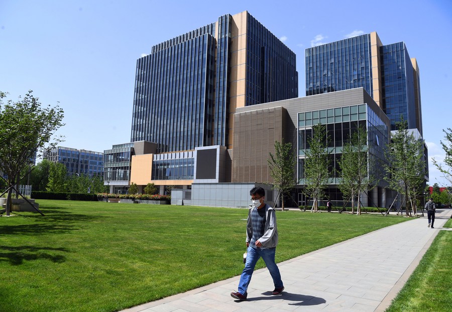 A man wearing a face mask walks at Zhongguancun Science City in Beijing, capital of China, May 18, 2020. (Xinhua/Ren Chao)