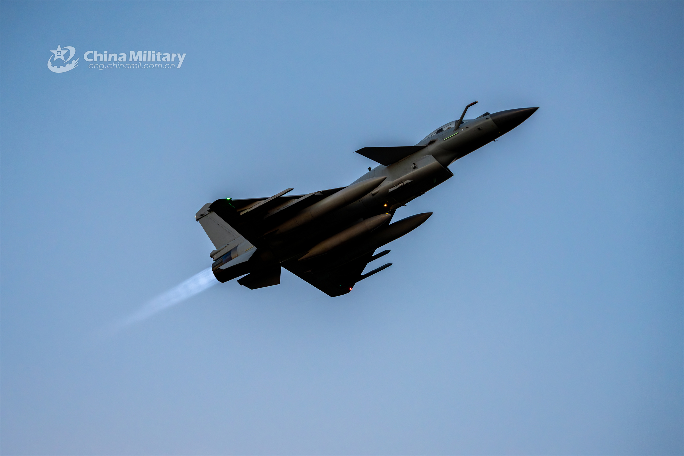 A J-10 fighter jet attached to an aviation brigade of the air force under the PLA Southern Theater Command soars into the sky during a recent flight training exercise. (eng.chinamil.com.cn/Photo by Hou Kaiwen)