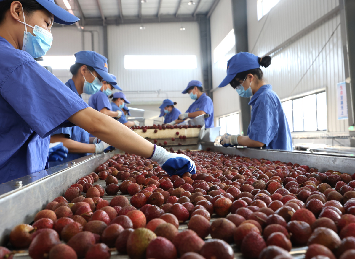 Employees sort lychee at a processing plant in Maoming, Guangdong province. QIU QUANLIN/CHINA DAILY