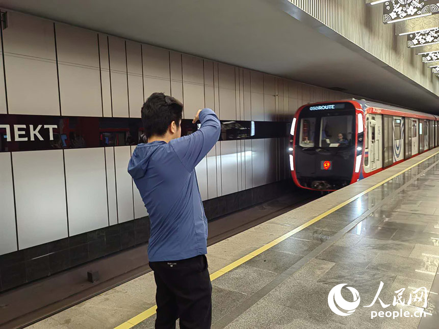A People's Daily Online journalist captures a moment at the Michurinsky Prospekt station on the Moscow Metro. (People's Daily Online/Shen Yaxin)