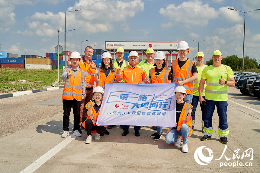 People's Daily Online journalists visit the Bely Rast Terminal Logistics Center in Moscow, Russia. (Photo/People's Daily Online)