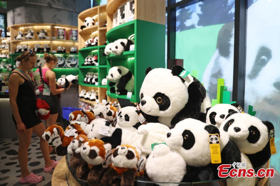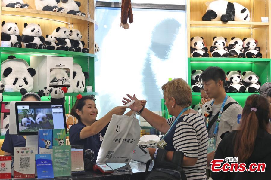 Panda products are displayed in a souvenir store at the Chengdu Research Base of Giant Panda Breeding in southwest China's Sichuan Province, Aug. 5, 2023. (Photo: China News Service/Liu Zhankun)