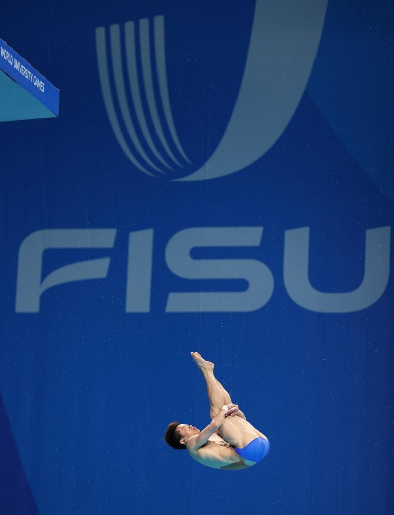 Huang Zigan of China competes in the men's 10m platform final at the Chengdu Universiade, August 7, 2023. (Xinhua/Wang Xiang)