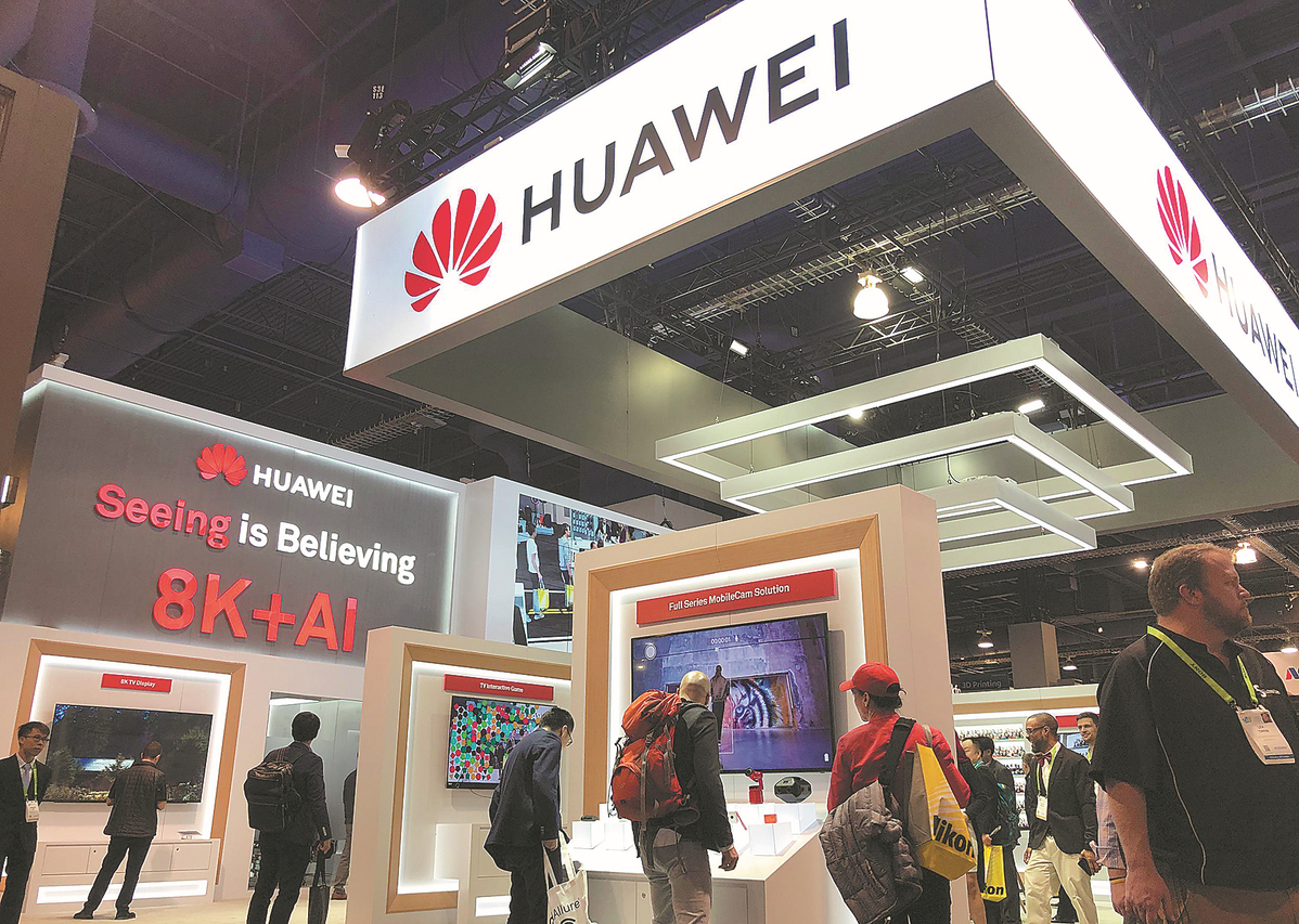 The Huawei booth is seen at the Consumer Electronic Show, an influential technology event, in Las Vegas, Nevada, on Jan 8, 2019. ZHANG SHUO/CHINA NEWS SERVICE