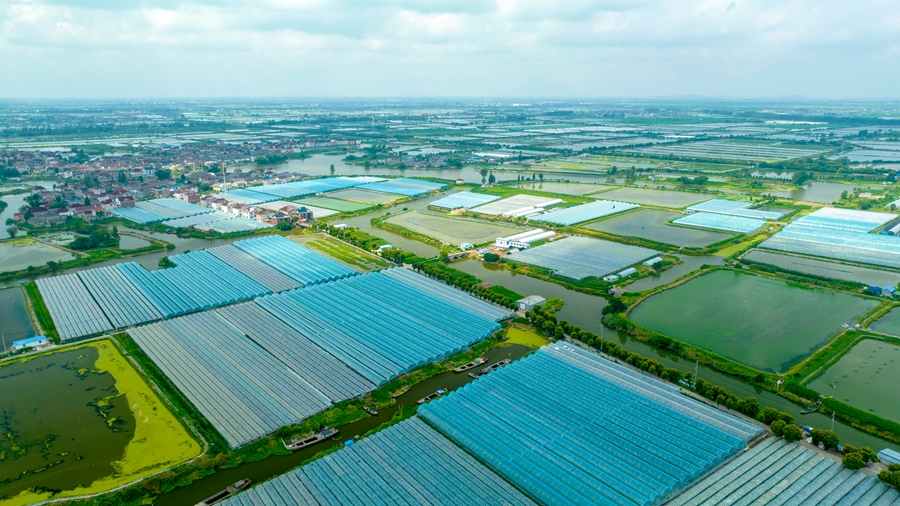 An aerial photo shows a grape planting base in Linhu township, Xinghua city, east China's Jiangsu Province. (Photo/Zhou Shegen)