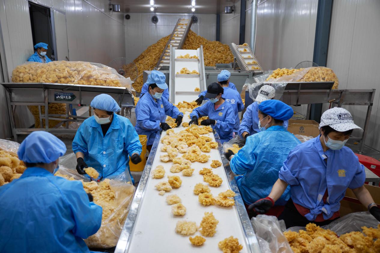 A photo shows workers in a snow fungus factory in Gutian county, Ningde city, southeast China's Fujian Province. (Photo courtesy of the interviewee)
