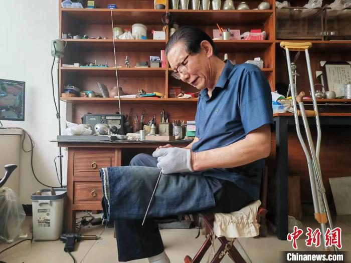 Wang Shengliang is the eighth-generation inheritor of traditional "Fengwangxiang" tin carving techniques in Laiwu district, Jinan, capital of east China's Shandong Province.
