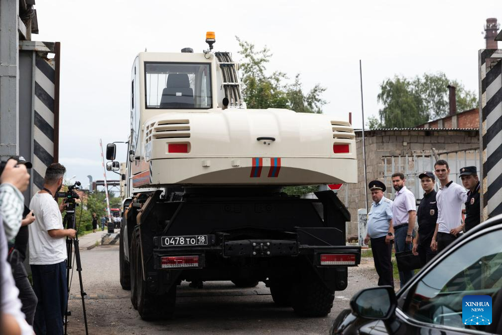 Rescuers arrive at the blast site of a plant in Moscow region, Russia, Aug. 9, 2023. Forty-three people have been injured so far in a blast at an optical-mechanical plant in the city of Sergiev Posad in the Moscow region on Wednesday, local authorities said. The explosion happened on Wednesday morning at around 10:40 a.m. local time (0740 GMT) at a pyrotechnics warehouse, which was being rented out on the optical-mechanical plant's territory by a private company, said Governor of the Moscow Region Andrei Vorobiev in a Telegram post. (Xinhua/Bai Xueqi)