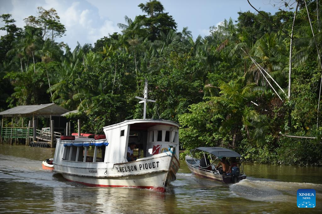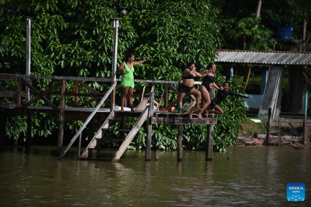 Residents have fun by a river in Belem, Brazil, Aug. 8, 2023. Brazilian President Luiz Inacio Lula da Silva criticized Wednesday what he called "green neocolonialism" and demanded funding commitments from developed countries for sustainable projects. (Photo by Lucio Tavora/Xinhua)