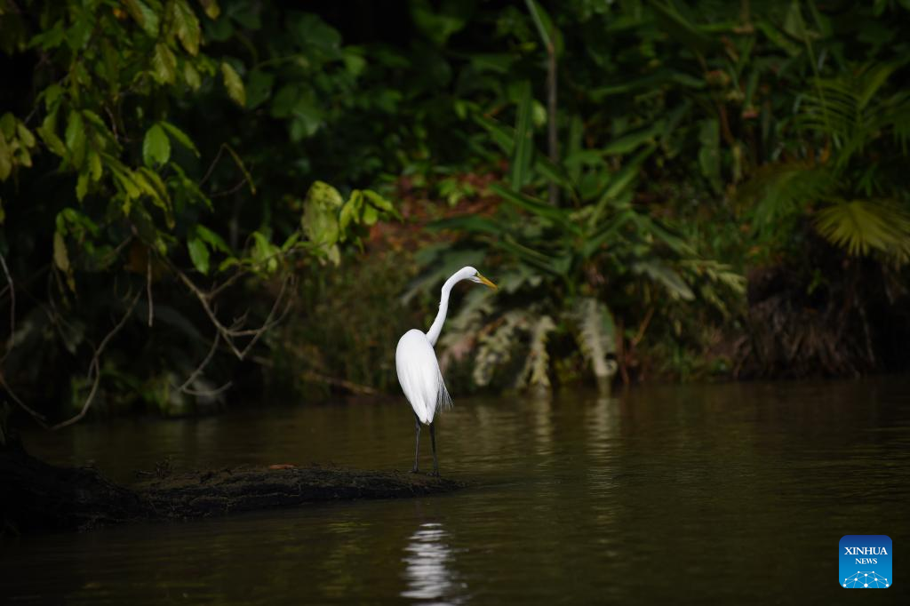 A heron is seen on a river in Belem, Brazil, Aug. 8, 2023. Brazilian President Luiz Inacio Lula da Silva criticized Wednesday what he called "green neocolonialism" and demanded funding commitments from developed countries for sustainable projects. (Photo by Lucio Tavora/Xinhua)