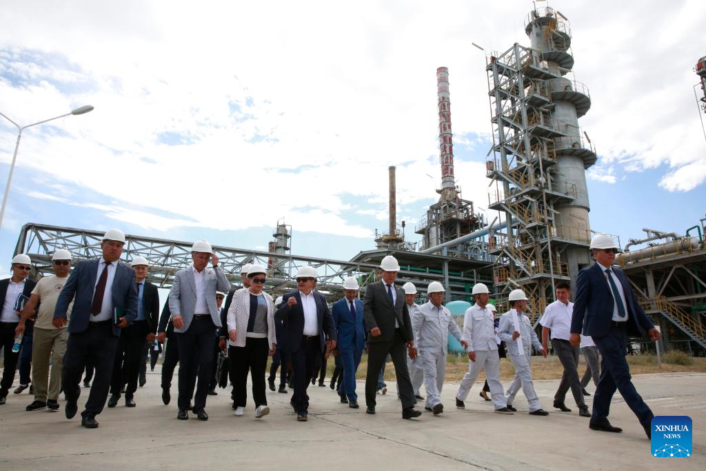 BISHKEK, Aug. 10 (Xinhua) -- Kyrgyz Prime Minister Akylbek Japarov on Tuesday praised a Chinese energy company's long-term contributions to Kyrgyzstan while visiting the company's Zhongda oil refinery project in the Kara-Balta city of Chui region.