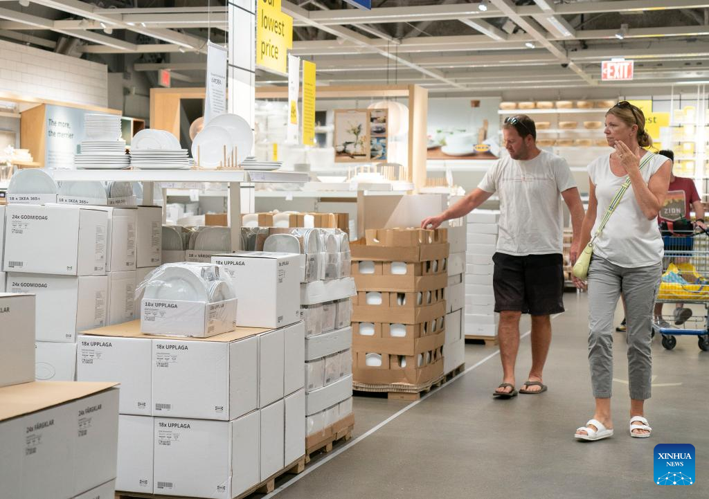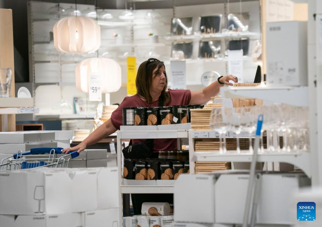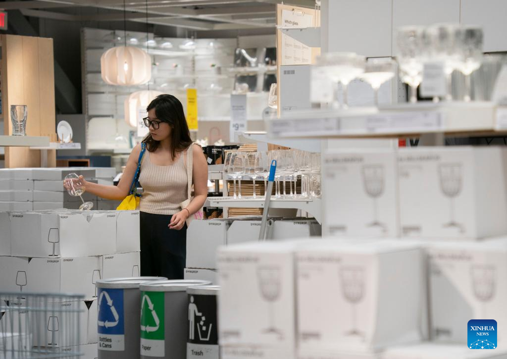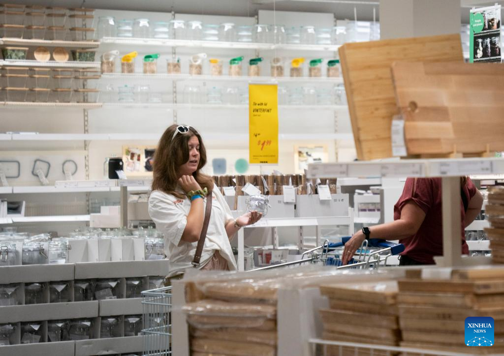 A customer selects goods at a store in East Palo Alto, California, the United States, Aug. 10, 2023. (Photo by Li Jianguo/Xinhua)