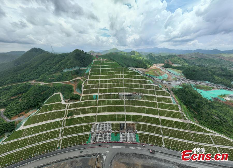 Aerial view of the construction site of Madao Junction of Pinglu Canal in Lingshan County, Qingzhou, south China's Guangxi Zhuang Autonomous Region, Aug. 10, 2023. (Photo: China News Service/Wang Yizhao)
