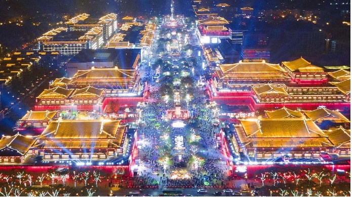 Photo shows the Datang Everbright City scenic area in Xi'an, northwest China's Shaanxi province. (People's Daily Online/Sun Lijun)