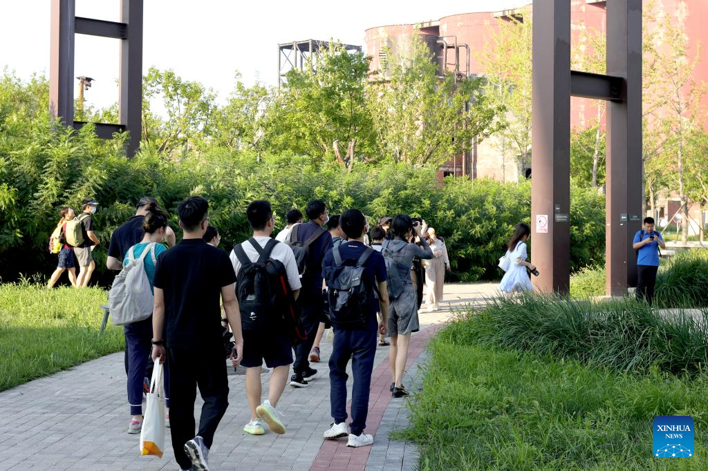 Journalists attend a media preview of the 2023 China International Fair for Trade in Services (CIFTIS) at Shougang Park in Beijing, capital of China, Aug. 13, 2023. The 2023 CIFTIS will be held at the China National Convention Center and Shougang Park in Beijing from Sept. 2 to Sept. 6. (Xinhua/Chen Shuo)