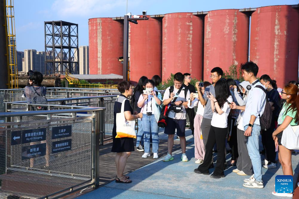 Journalists attend a media preview of the 2023 China International Fair for Trade in Services (CIFTIS) at Shougang Park in Beijing, capital of China, Aug. 13, 2023. The 2023 CIFTIS will be held at the China National Convention Center and Shougang Park in Beijing from Sept. 2 to Sept. 6. (Xinhua/Sun Weitong)