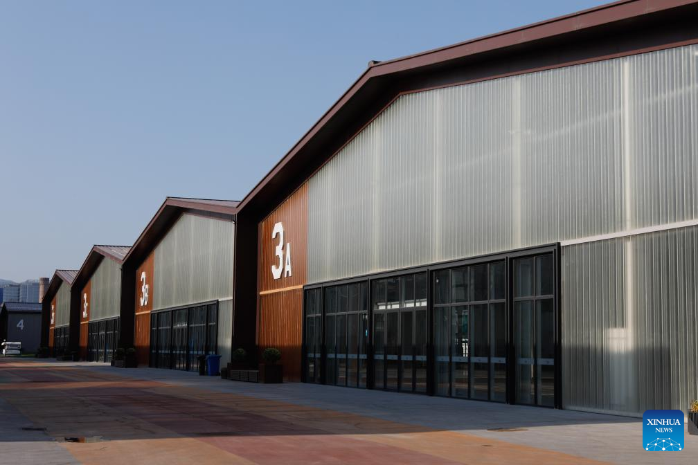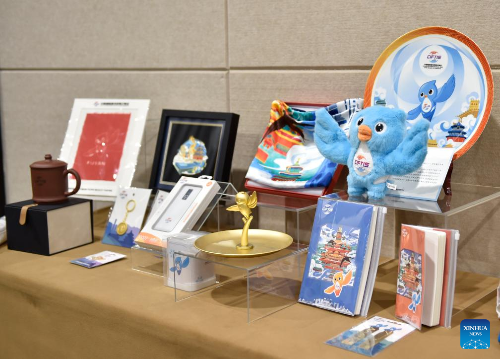 This photo taken on Aug. 13, 2023 shows some commodities related to the 2023 China International Fair for Trade in Services (CIFTIS) at Shougang Park in Beijing, capital of China. The 2023 CIFTIS will be held at the China National Convention Center and Shougang Park in Beijing from Sept. 2 to Sept. 6. (Xinhua/Liu Lingyi)