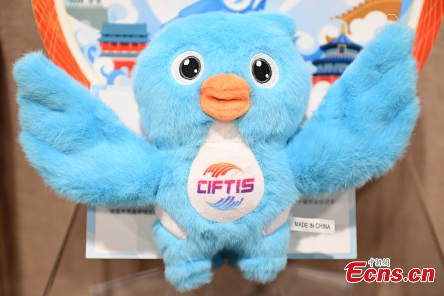 Mascot for the CIFTIS is seen at the Shougang Park, one of the two venues for the 2023 China International Fair for Trade in Services, or CIFTIS, which will run online and on-site simultaneously from Sept. 2 to 6, 2023 in Beijing. (Photo: China News Service/Tian Yuhao)