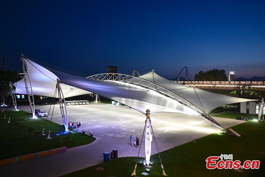 Journalists visit the Shougang Park, one of the two venues for the 2023 China International Fair for Trade in Services, or CIFTIS, which will run online and on-site simultaneously from Sept. 2 to 6, 2023 in Beijing. (Photo: China News Service/Tian Yuhao)