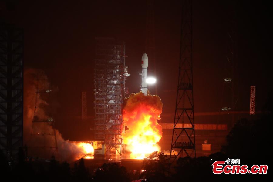 A Long March-3B carrier rocket carrying the Land Exploration-4 01 satellite, the world's first synthetic aperture radar satellite, blasts off from the Xichang Satellite Launch Center in southwest China's Sichuan Province, Aug. 13, 2023. (Photo: China News Service/Zhang Yingjian)