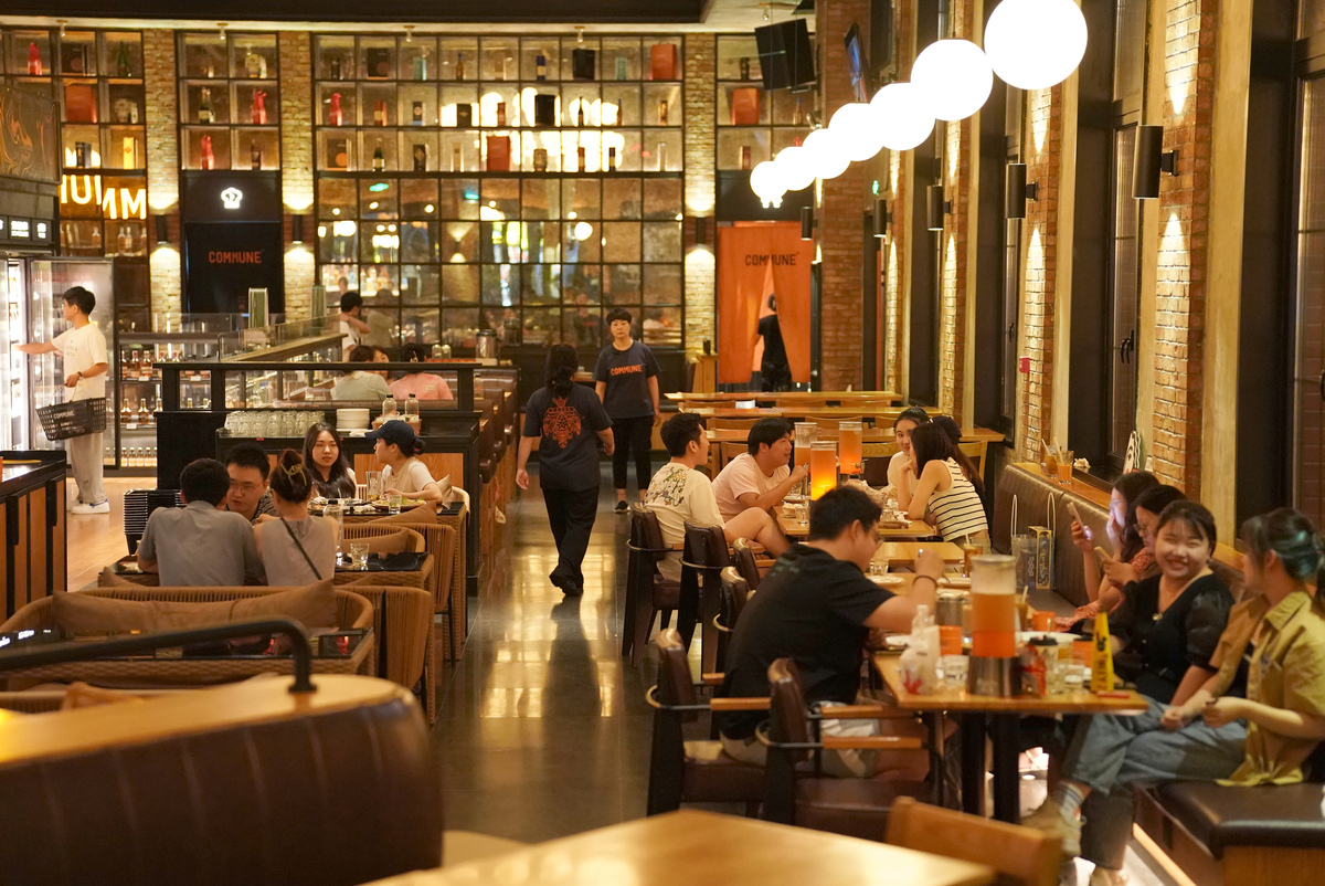 People enjoy food at a restaurant in Xi'an, Northwest China's Shaanxi province, on Aug 10, 2023. [Photo/Xinhua]
