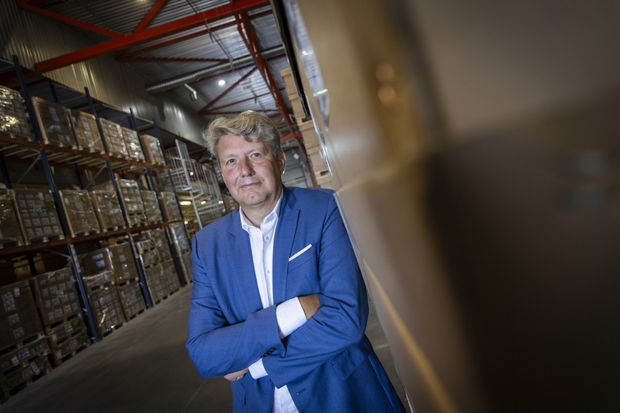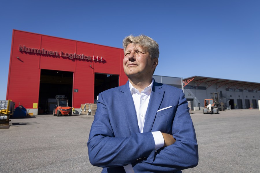 Olli Pohjanvirta, CEO of Nurminen Logistics, poses for a photo during an interview in Helsinki, Finland, on Aug. 15, 2023. (Photo by Matti Matikainen/Xinhua)