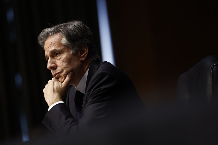 U.S. Secretary of State Antony Blinken testifies before the U.S. Senate Foreign Relations Committee on Capitol Hill in Washington, D.C., the United States, on April 26, 2022. (Photo by Ting Shen/Xinhua)