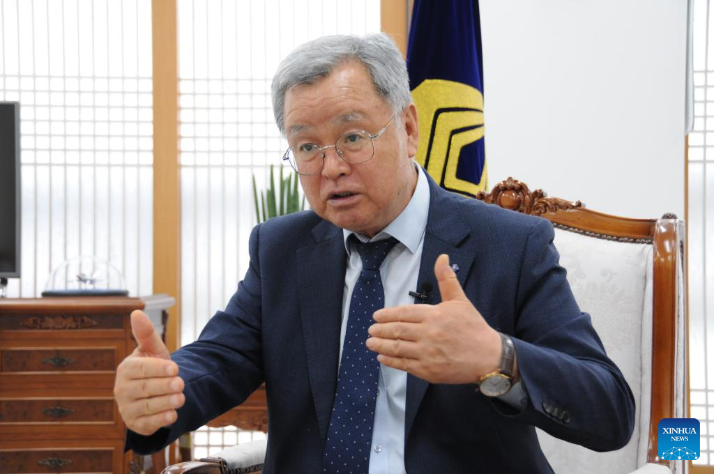 Han See-jun, president of the Independence Hall of Korea, speaks during an interview with Xinhua in Cheonan, South Korea, on June 12, 2023. (Xinhua/Zhou Siyu)