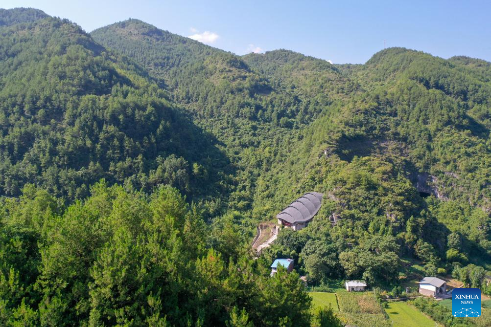 This aerial photo taken on Aug. 16, 2023 shows the archaeological excavation area at the Longgupo Site in Wushan County, southwest China's Chongqing. Longgupo Site officially started the fifth stage of excavation on Wednesday, and researchers are expected to find more about ancient humans, fossils and related artifacts there.?(Xinhua/Tang Yi)
