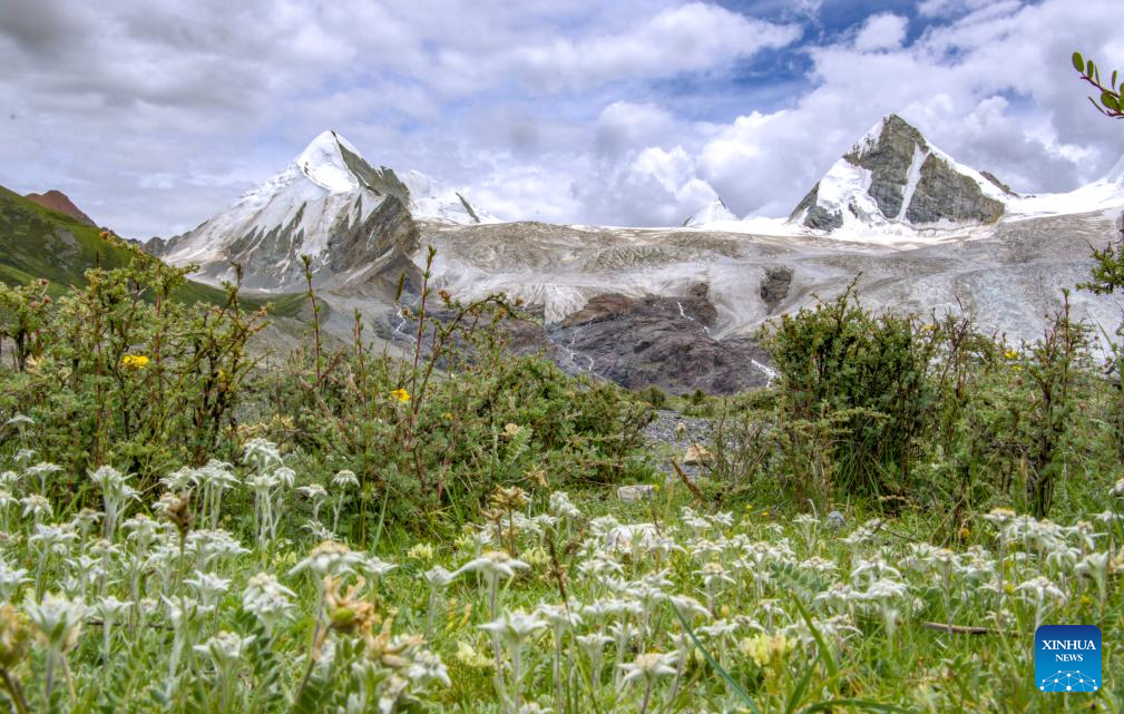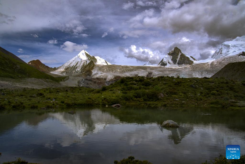 This photo taken on Aug. 16, 2023 shows a view of the Sapukonglagabo Mountain in Biru County of Nagqu, southwest China's Tibet Autonomous Region. (Xinhua/Jiang Fan)