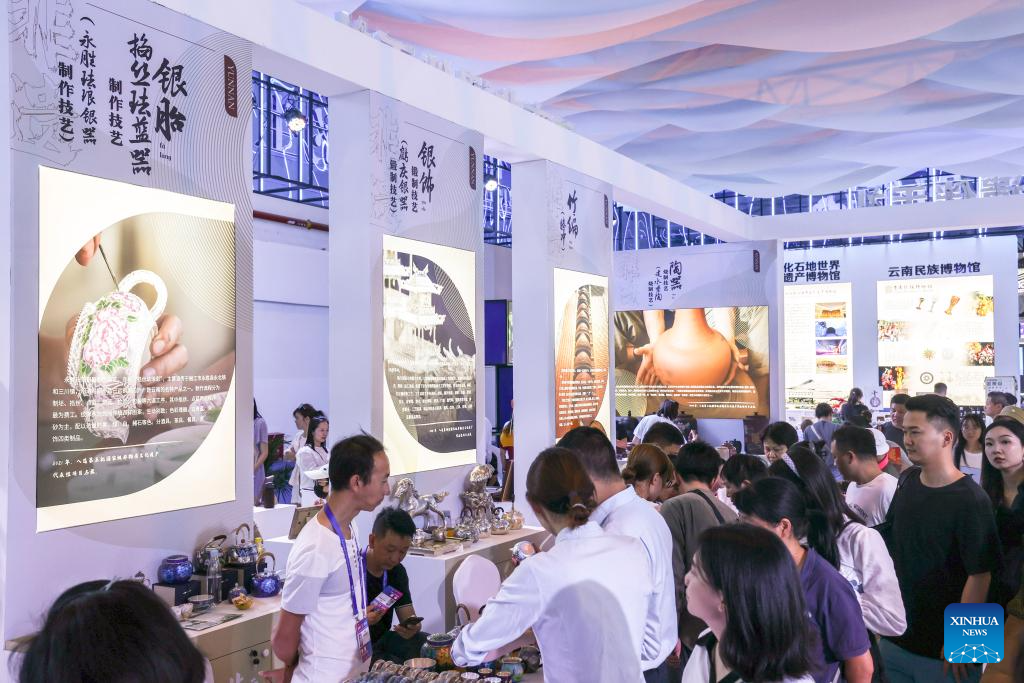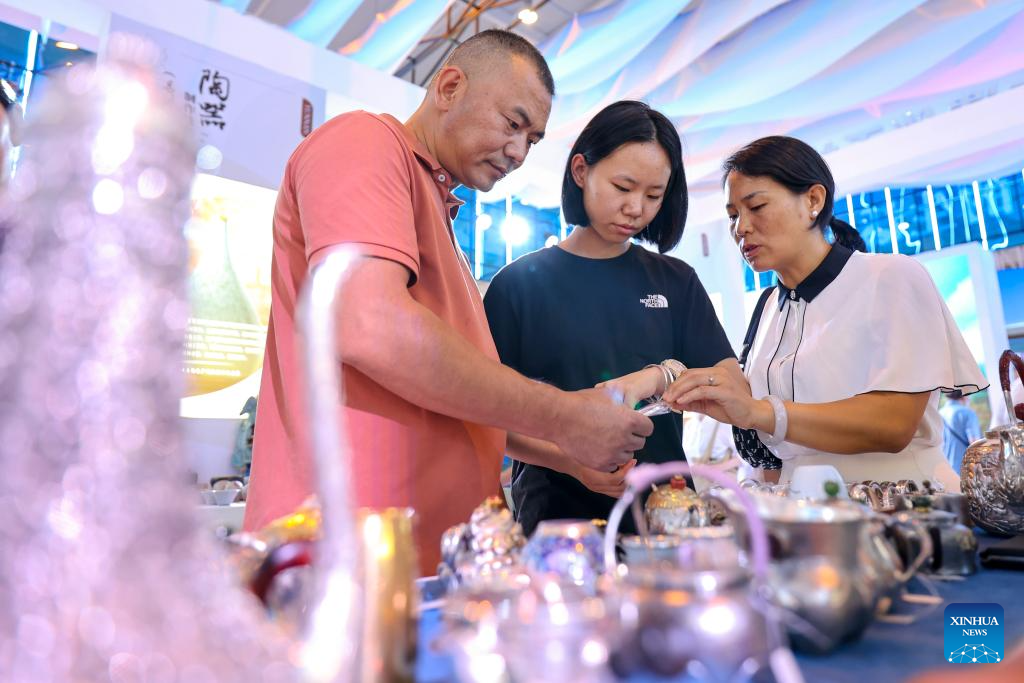 Visitors select silverware at the 7th China-South Asia Exposition in Kunming, southwest China's Yunnan Province, Aug. 17, 2023. The 7th China-South Asia Exposition opened here on Wednesday. (Xinhua/Cui Wen)