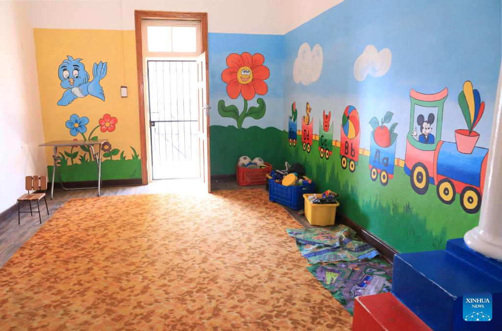 This photo taken on Aug. 11, 2023 shows a classroom of an early learning center in De Aar Town, more than 750 kilometers northeast of Cape Town, South Africa. This early learning center was funded by Longyuan South Africa Renewables of China Longyuan Power Group Corporation Limited, which has funded the establishment of four early learning centers in De Aar to provide education for children from poor families. Nearly 500 children in need have been admitted to these learning centers so far. (Xinhua/Dong )