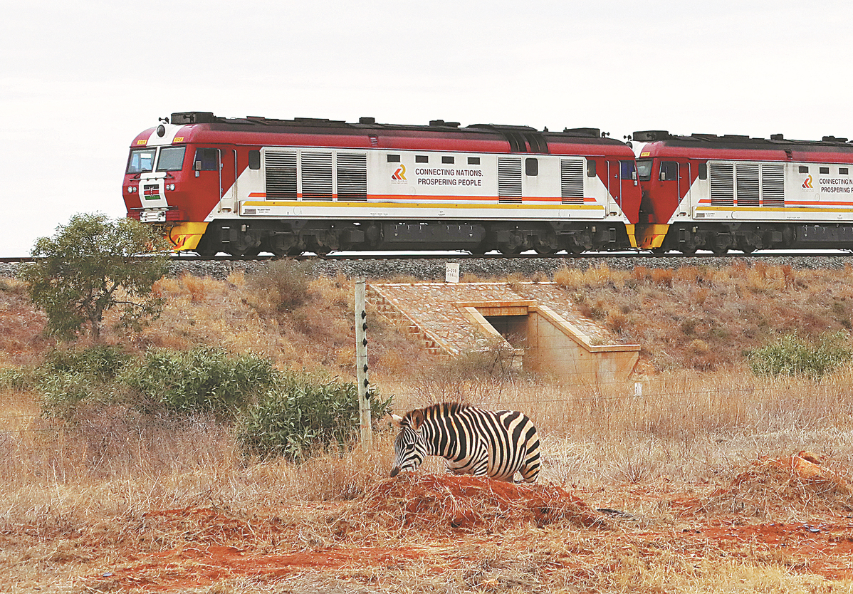 Fencing keeps a zebra out of harm's way as it grazes by the tracks of the Mombasa-Nairobi Standard Gauge Railway in Kenya on July 28. DONG JIANGHUI/XINHUA