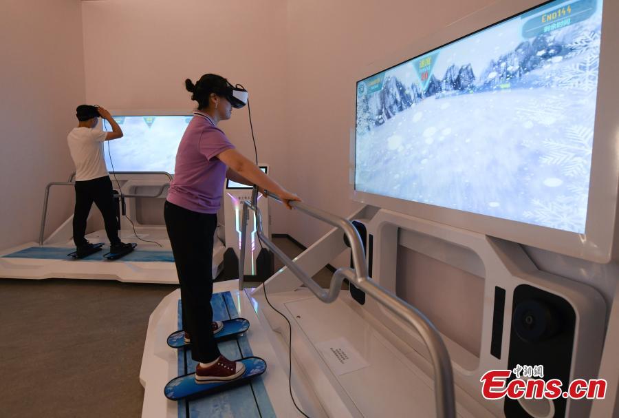 Visitors try VR base ski simulators at the Hangzhou Asian Games Museum in east China's Zhejiang Province, Aug. 17, 2023. (Photo: China News Service/Wang Gang)