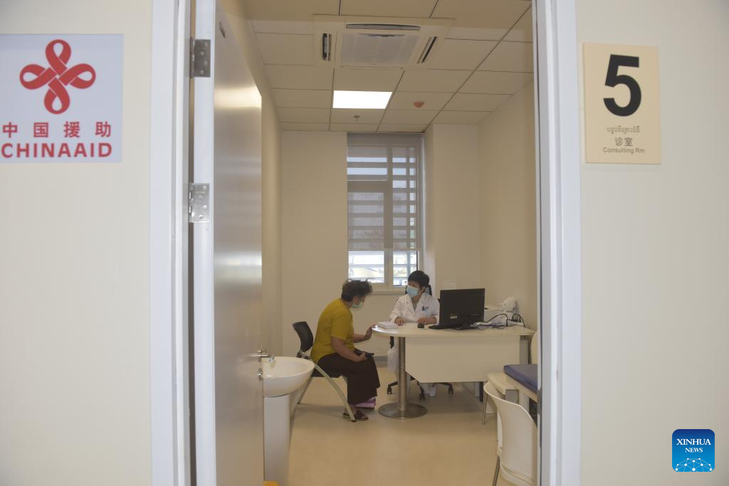 A doctor of a Chinese medical team provides medical services for a patient at the Cambodia-China Friendship Preah Kossamak Hospital's Chinese Medicine Clinic in Phnom Penh, Cambodia, Aug. 18, 2023. The eight-member team from China's Guang'anmen Hospital arrived in Phnom Penh in July 2023 for a one-year medical mission. They are the second batch of Chinese TCM experts dispatched to the Southeast Asian nation.