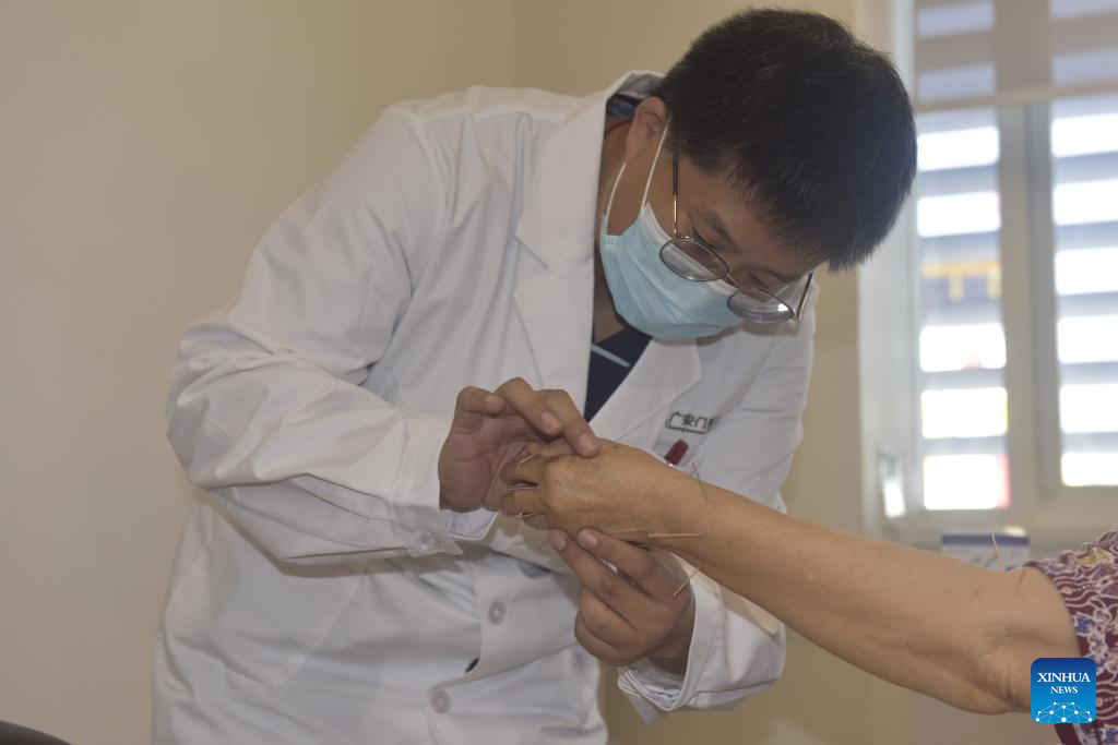 "I previously could not walk unaided, but after I have come for acupuncture treatment several times, my legs have regained their strength, and I can walk again," she told Xinhua on Friday at the Chinese Medicine Clinic.