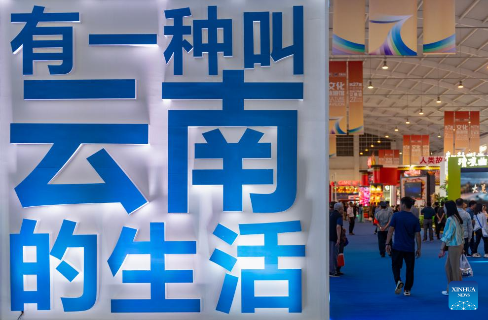 This photo taken on Aug. 18, 2023 shows a view of the Culture and Tourism Pavilion at the seventh China-South Asia Expo in Kunming, southwest China's Yunnan Province. The ongoing seventh China-South Asia Expo has attracted more than 30,000 exhibitors, representatives, and guests from 85 countries and regions to attend online and offline. (Xinhua/Chen Xinbo)