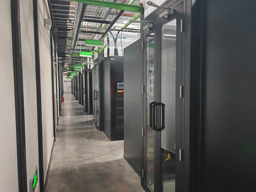 This photo taken on Aug. 2, 2023 shows the central data center of Westcloud Computing Technology Co., Ltd. (Westcloud) in Zhongwei City, northwest China's Ningxia Hui Autonomous Region. (Xinhua/Xu Jinyu)