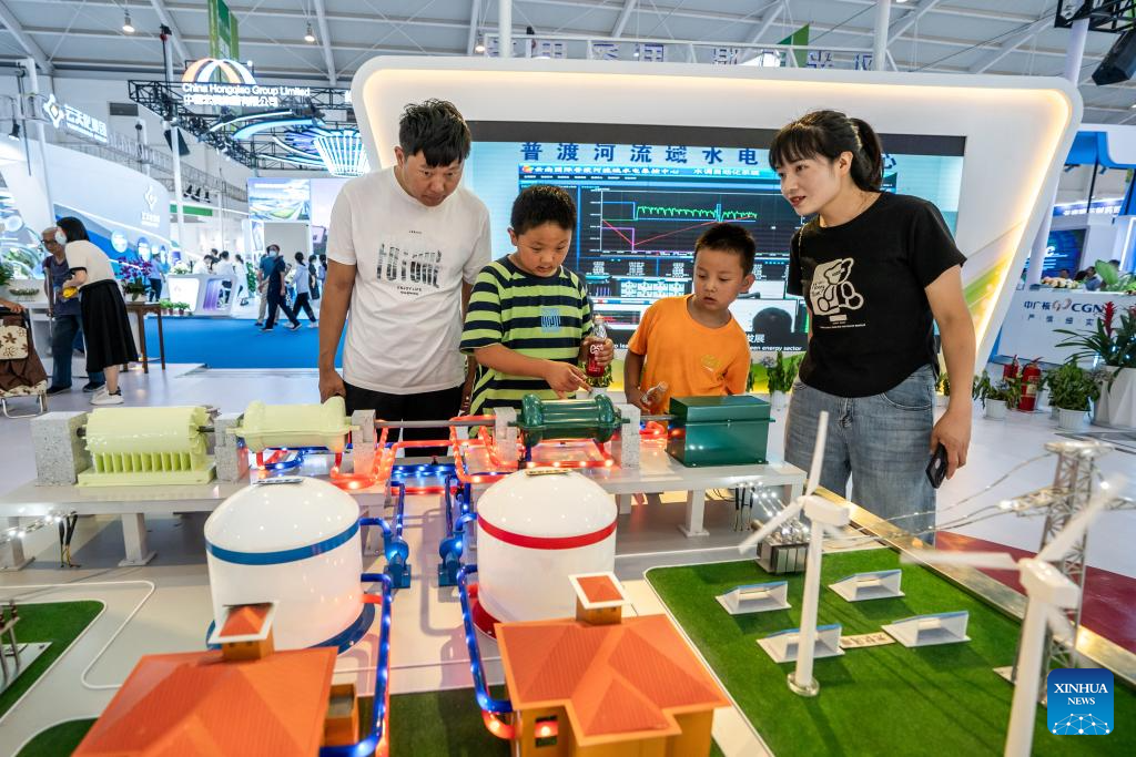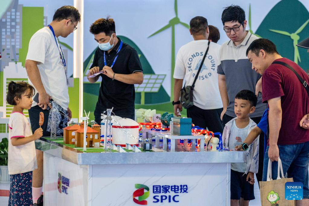 People visit the seventh China-South Asia Expo in Kunming, southwest China's Yunnan Province, Aug. 19, 2023. The ongoing seventh China-South Asia Expo has attracted more than 30,000 exhibitors, representatives, and guests from 85 countries and regions to attend online and offline. (Xinhua/Hu Chao)