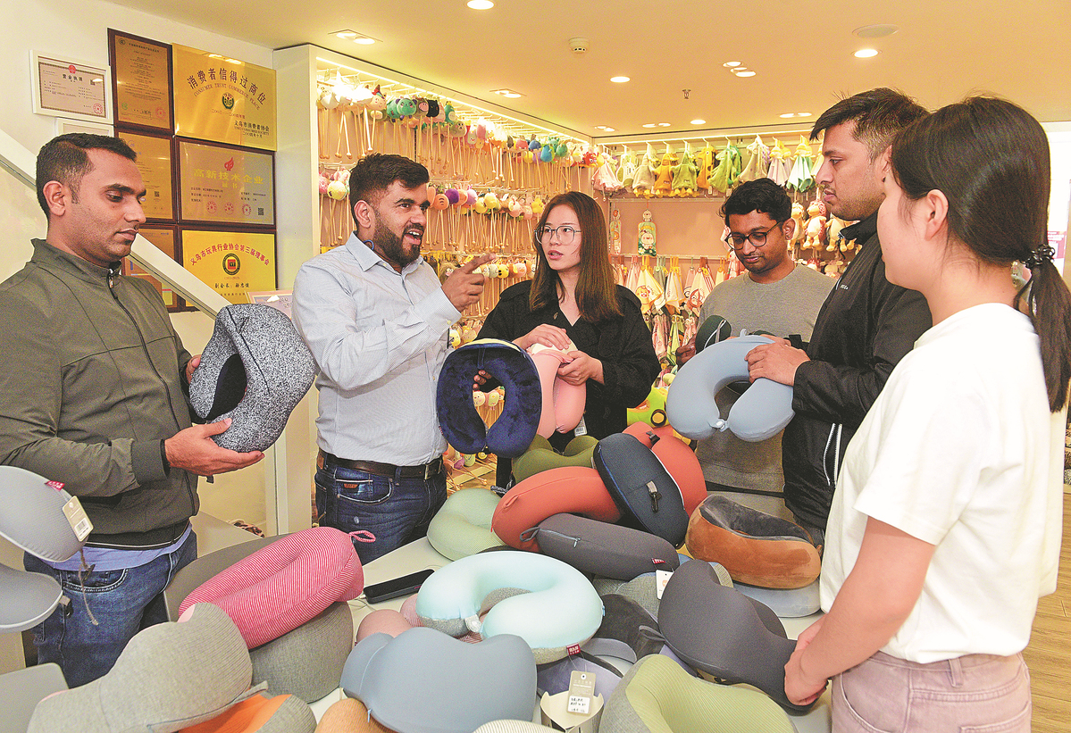 Foreign consumers place orders at Yiwu International Trade Market in Yiwu, Zhejiang province, in May. QIAN XUSHENG/FOR CHINA DAILY