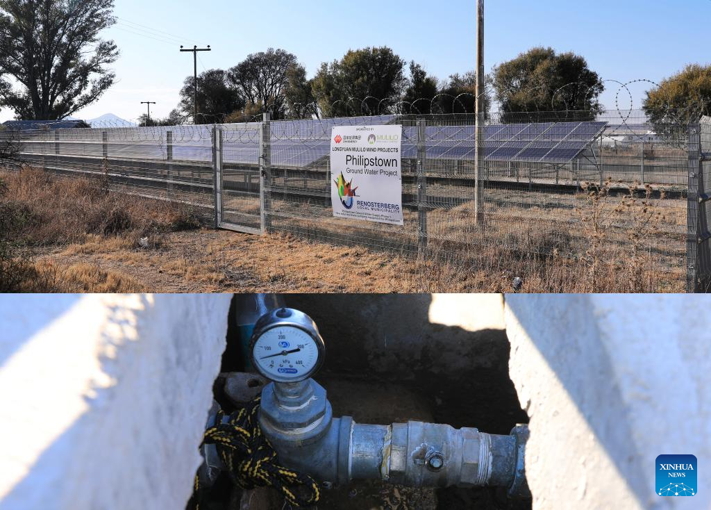 This combo photo taken on Aug. 11, 2023 shows a ground water project built by Longyuan SA in De Aar, South Africa. (Xinhua/Dong Jianghui)