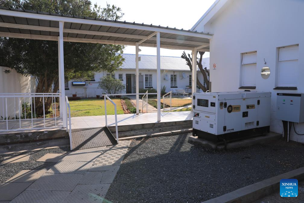 A generator donated by Longyuan SA is seen in the courtyard at a nursing home in De Aar, South Africa, Aug. 10, 2023. (Xinhua/Dong Jianghui)