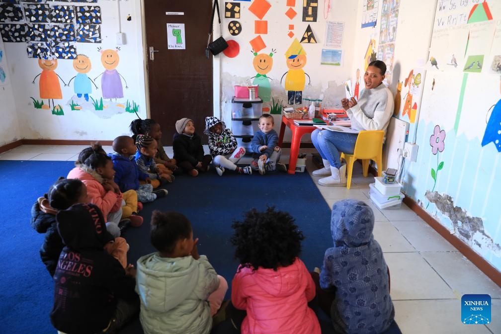 A teacher gives a lesson at a preschool operated by Longyuan SA in De Aar, South Africa, Aug. 11, 2023. (Xinhua/Dong Jianghui)