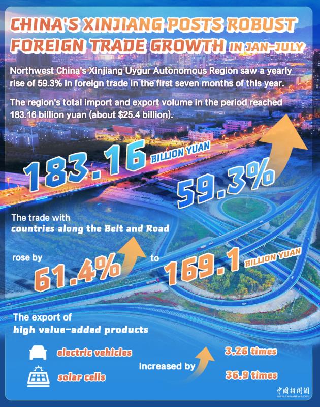 - China's Xinjiang posts robust foreign trade growth in Jan-July