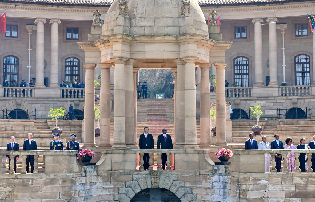 Chinese President Xi Jinping, who is paying a state visit to South Africa, holds talks with South African President Cyril Ramaphosa in Pretoria, South Africa, Aug. 22, 2023. (Xinhua/Huang Jingwen)