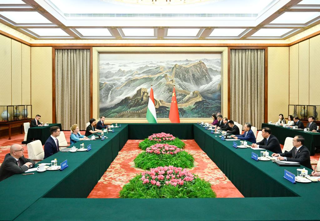 Zhao said the NPC is willing to work with the Hungarian National Assembly to implement the important consensus reached by the leaders of the two countries, provide legal guarantees for the development of bilateral relations, and strengthen exchanges and cooperation on legislative supervision, environmental protection and green development.